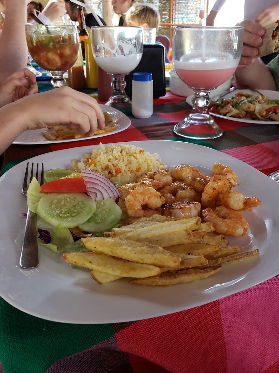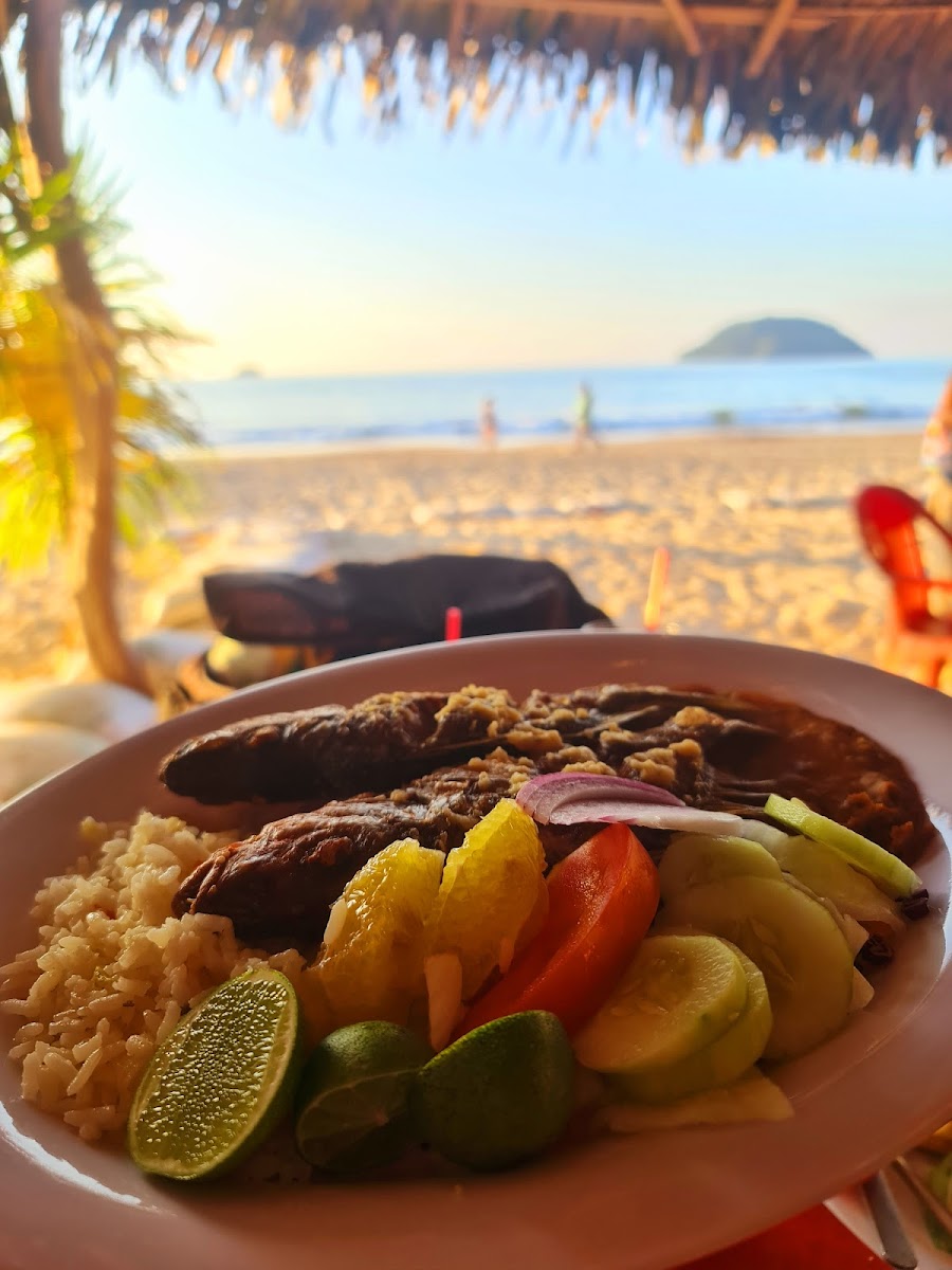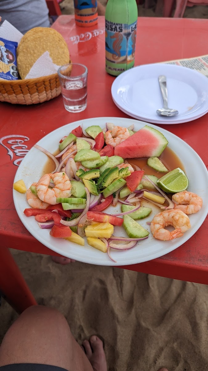 The restaurant is right on the beach. The food was really good, my favorite was the fish ceviche, and the staff was nice.